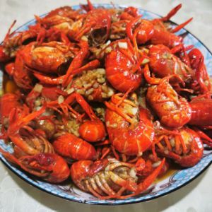 下油,等油七八成热放入山奈八角等,炒香后放入小龙虾一起炒。