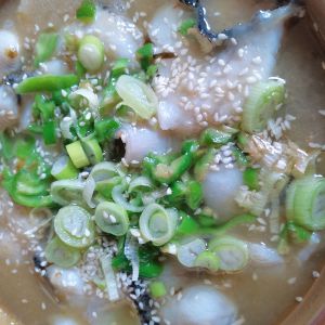 把汤浇在鱼片上,放葱花,倒热油,洒点芝麻,好看又下饭的酸菜鱼就是成了!干饭喽!