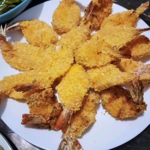 平铺在空气炸锅中,我做的有点多,放了两层,在裹好的虾身上刷层薄油,180℃10分钟,就能闻到香喷喷的味道了!