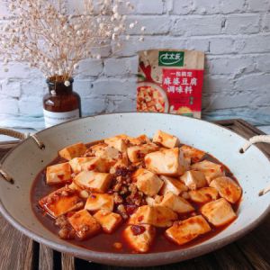 准备适量肉馅儿,一包太太乐麻婆豆腐调味料