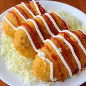 油温烧至180度,下入可乐饼炸至两面金黄.