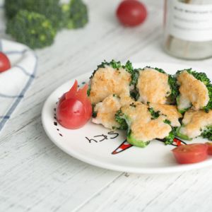 将搅拌好的虾泥均匀涂抹在西兰花的切面上。