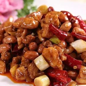炒至葱段断生,鸡肉熟后倒入料汁迅速翻炒均匀。