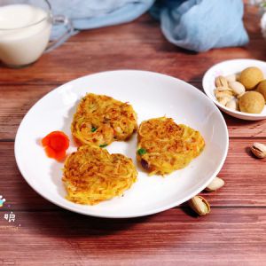尽量用不粘的平底锅,滴一滴油,挖一勺入锅,可以找个模具框一框,盖上锅盖,小小火,每面煎两分半钟,这个颜色就刚好