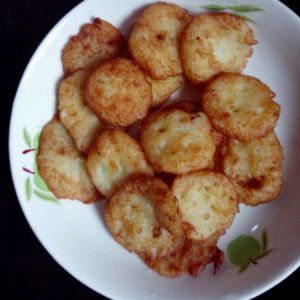 揉成小圆球 压成饼状 小火炸成金黄色 出锅装盘 OK啦