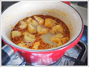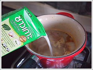 加入开水和椰浆,如果没有椰浆可以用牛奶代替。