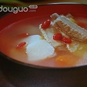 汤锅小火煮1小时后,如筷子已可以轻松插进小排的肉中,再放入山药、胡萝卜和枸杞。
