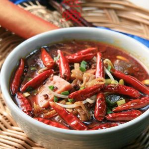 炒锅加少许油烧四成热时,加入干红椒和花椒,小火炸出香味,淋在菜上面