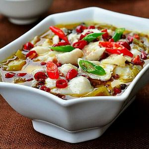 酸菜切丝焯水备用。辣椒切圈和花椒一起。鱼头骨鱼皮准备好,姜切片。