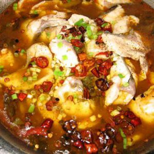 最后锅中放入食用油,如果喜欢麻味,可以再放一些麻椒油和花椒油,油七成热时放入料包里的辣椒面,然后泼到鱼上就可以上桌了。