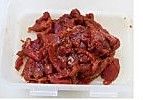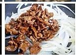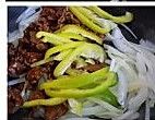 放羊肉片,盐、白糖,青椒丝,翻炒均匀,即可。