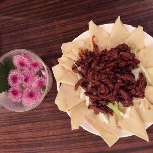 锅中加油适量,凉油时加入甜面酱,加热后加入浸泡葱姜的水,不要倒入葱姜,然后搅拌加热至冒泡后加入肉丝,再加入一勺糖,翻炒至汤汁收干关火