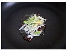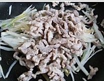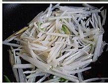 加入葱丝、姜丝、白萝卜丝煸炒。