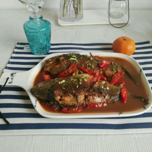 将烧好的鲫鱼装盘,撒上葱花即可,一盘美味可口下饭的红烧鲫鱼大功告成