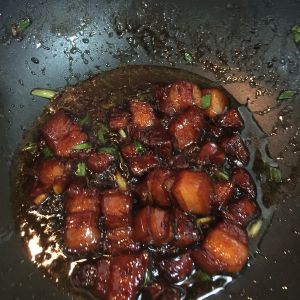 加入两汤匙老抽(红烧汁也可以)让肉再上色,之后加入料酒三汤匙。加入开水没过肉,先用大火烧开再小火慢炖。(加入开水这步骤没有拍照)