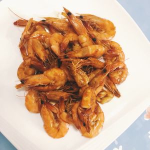 热油,放入蒜爆香,放入大虾,大火快速翻炒,至表面金黄色(外表有一点点酥皮)