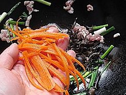 放入胡萝卜丝煸炒;