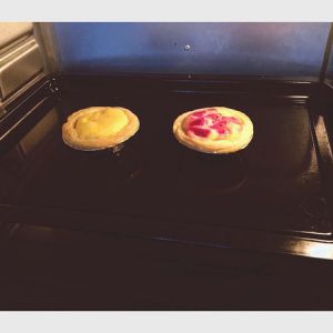 把蛋挞水倒入蛋挞皮中,9分满,怕溢出来的话可以倒7-8满。另外一个我放了火龙果