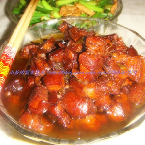 锅内放少许油少许清水,放入白糖炒出糖色后,加入焯好的肉块翻炒,上色后继续小火翻炒,直至肉块缩小,锅内油增加,说明肉块里的油已被逼出,捞出控油。