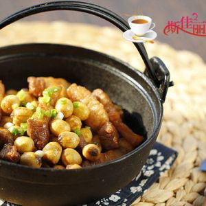 大火收汁后盛入小钵中,表面撒上小葱末。