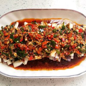 准备食材,把所有的放到小碗里,调成汁,倒在茄子上就好了