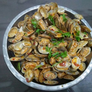 花蛤买来用水泡两个小时吐沙,水里放少许咸盐。