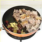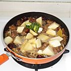 加入去皮切成滚刀块的土豆,大火烧开后,小火、盖盖焖40-60分钟(视鸭子的品种而定),最后如果汤汁还多的话,改大火尽量收干即可。
