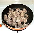 取平底锅,不要放油,鸭皮朝下,将鸭块排放进锅里,中火煸至鸭皮呈金黄色。
