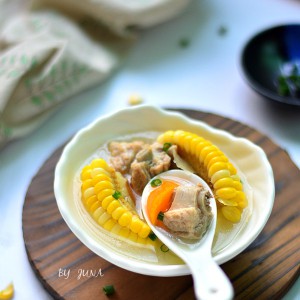 和焯好的排骨一起放入陶煲,注入2L清水,放入姜片