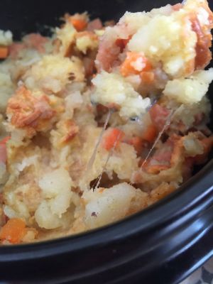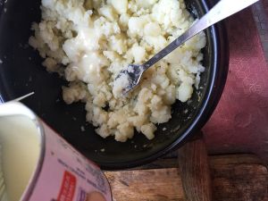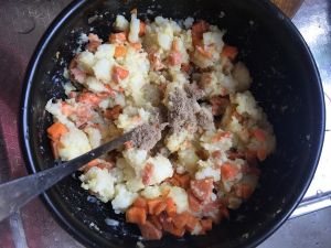 放到土豆泥中,加点黑胡椒粉搅拌均匀。