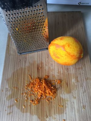 橙子用盐洗干净,皮擦成细丝!