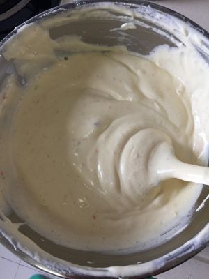分三次将蛋白和蛋黄全部拌匀!