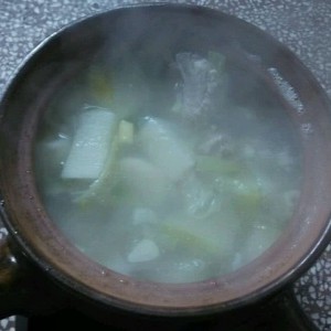 加入山药和冬瓜,小火再炖20分钟,最后根据自己口味加入少许盐和鸡精