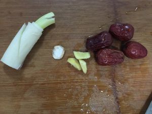准备相关辅料,葱、酱、大枣、花椒、大料、料酒、酱油、盐适量。
