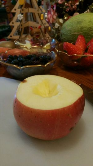 苹果上部切去,再挖个坑。