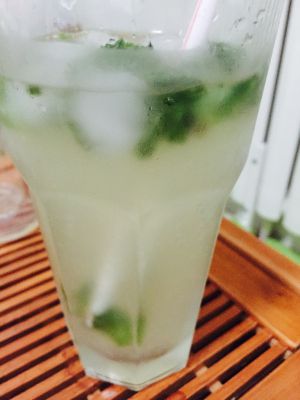 1.薄荷叶少许,洗净放入杯底,用器皿捣碎。