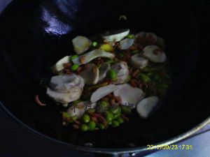 倒入芋头与毛豆,再次翻炒一下。