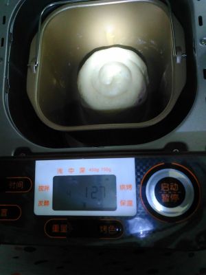 放进面包桶内,重新启动面包机,进入最后的发酵和烘烤程序