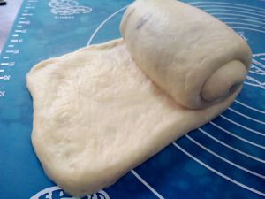 甜面包一共需2小时33分,第一次搅拌8分钟后,发酵10分钟,发酵后加入黄油,面包机会继续进行搅拌2,待显示1:35分发酵时,暂停,取出面包桶的搅拌棒。