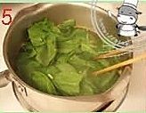 菠菜放入开水里汆烫1分钟,捞起并挤干水份;
