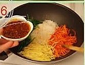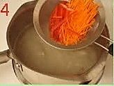锅里烧热水,放入泡好的粉丝汆烫半分钟,立即捞起用冷开水冲洗并沥干水份,将胡萝卜和红甜椒切丝放入开水里汆烫1分钟,捞起并沥干水份;