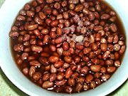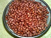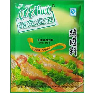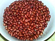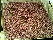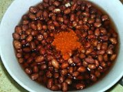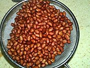 将开水倒入花生中,加入烤肉料,搅拌均匀