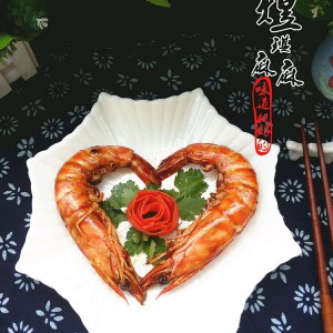 改中火,放入大虾,炒均匀挂上番茄酱。
