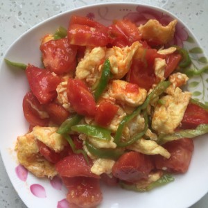 炒锅倒油将鸡蛋炒熟盛出,倒油将西红柿加盐糖炒出水加入炒好的鸡蛋翻炒片刻,即可出锅,装盘撒入葱花。