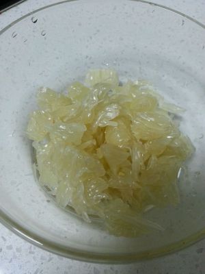 剥柚子肉,扳成细细碎碎一瓣一瓣的样子