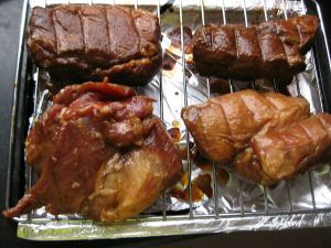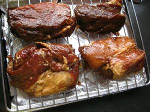 放到200度预热好的烤箱烤15分钟,取出来再刷一层蜜汁,并且给肉翻个面,放回烤箱再烤10分钟。