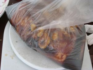 把肉装到一个保鲜袋里,倒入腌肉酱汁,密封起来,放入冰箱冷藏腌制1天。