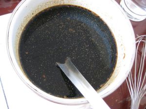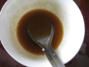 红曲米用生抽浸泡30分钟以上至渗出颜色,然后把米过滤出来,再加入腌肉酱汁部分的其他材料拌匀。