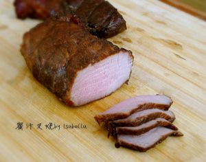叉烧出炉后在表面刷一层植物油,不要马上切,放在一边休息个30分钟,就可以切片开吃了。
