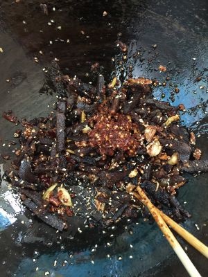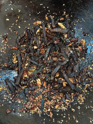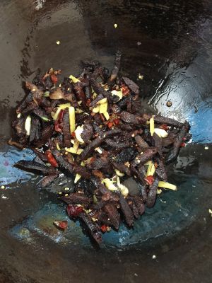 加入花椒,生姜,蒜瓣,辣椒炒香